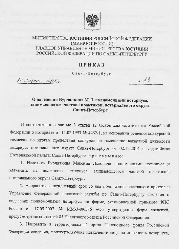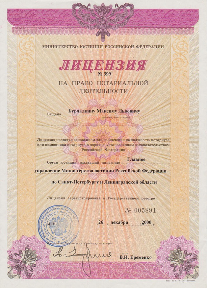 Нотариус Санкт-Петербурга Бурчалкин Максим Львович